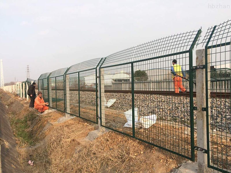產(chǎn)品材質(zhì)及工藝:內(nèi)部采用HPB300冷拔低碳鋼絲與Q235矩管邊框;焊接完畢后,表面采用整體熱鍍鋅后浸塑處理,浸塑粉末一般采用墨綠、表面光滑、平整、日久抗腐蝕、抗紫外線的特性。鐵路防護(hù)柵欄是鐵路的安全設(shè)施安裝工程,主要應(yīng)用在鐵路軌道兩側(cè),用來防止來往的行人接近軌道及來往的火車,以保證行人的人身安全。因此,鐵路防護(hù)柵欄無論在技術(shù)上還是在質(zhì)量上都比其他隔離柵要求更加嚴(yán)格。鐵路防護(hù)柵欄采用立柱混凝土澆筑件,工程造價低,強度高,整體穩(wěn)定性好,適合大面積采用。